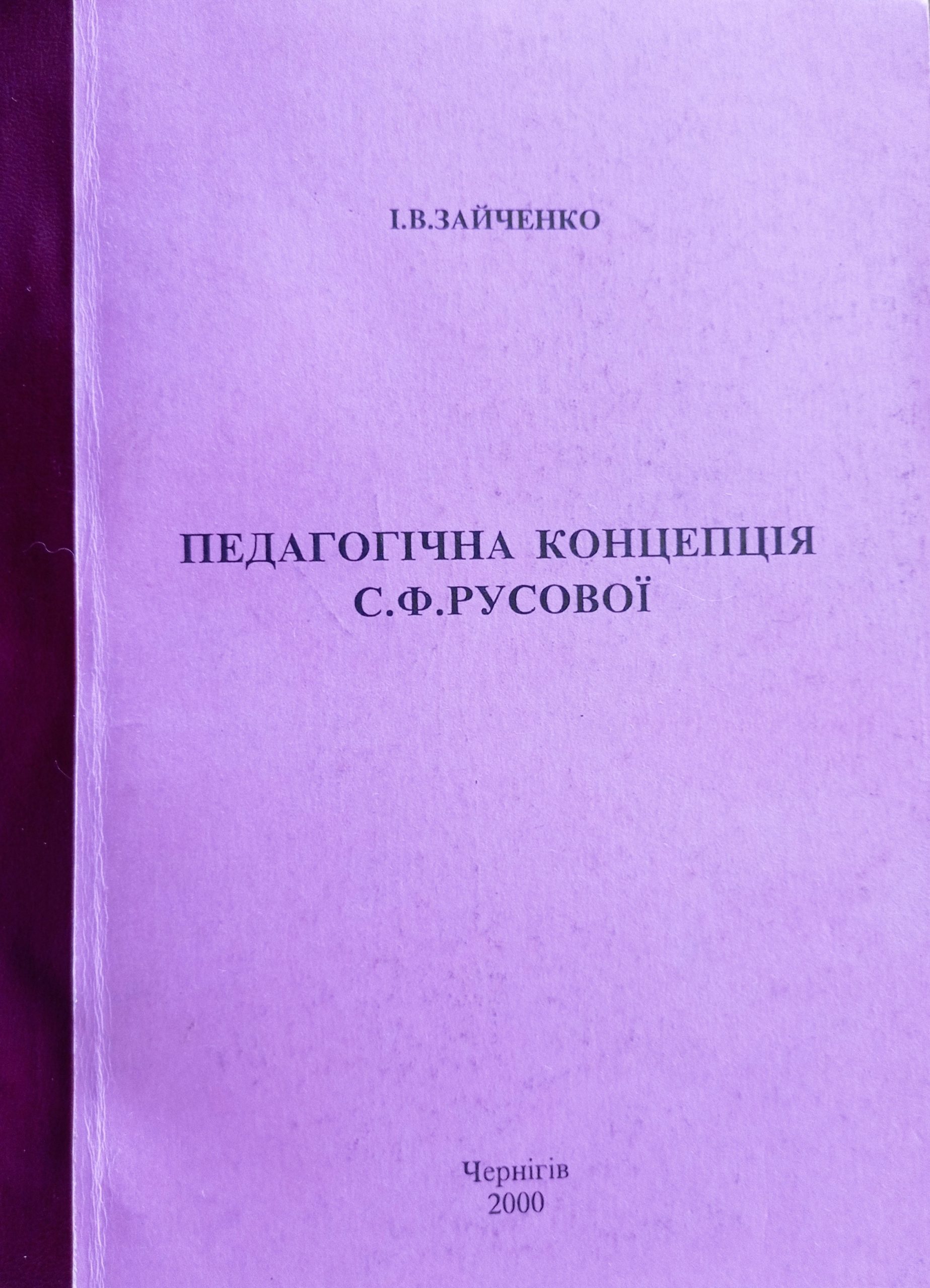 Зайченко І. В. Педагогічна концепція С.Ф. Русової : навч. посіб. / І. В. Зайченко ; Чернігів. держ. пед. ун-т ім. Т.Г. Шевченка. – Вид. 2-ге, допов. і перероб. – Чернігів : [б. в.], 2000. – 232 с.