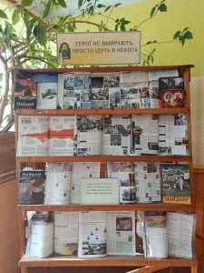 Завідувачка сектором читального залу історичного факультету Вікторія Биковська організувала і презентувала книжкову виставку «Герої не вмирають. Просто ідуть в небеса».