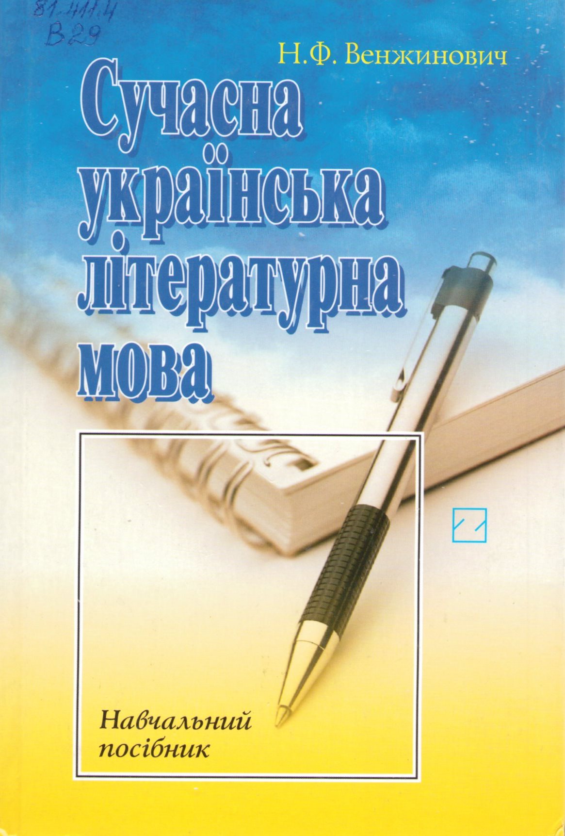 Венжинович Н. Ф. Сучасна українська літературна мова : навч. посіб. / Н. Ф. Венжинович. – 3-тє вид., випр. і допов. – Київ : Знання, 2008. – 303 с.