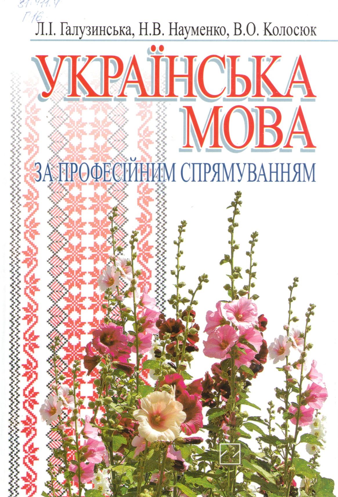 Галузинська Л. І. Українська мова за професійним спрямуванням : навч. посіб. / Л. І. Галузинська, Н. О. Науменко, В. О. Колосюк. – Київ : Знання, 2008. – 430 с.
