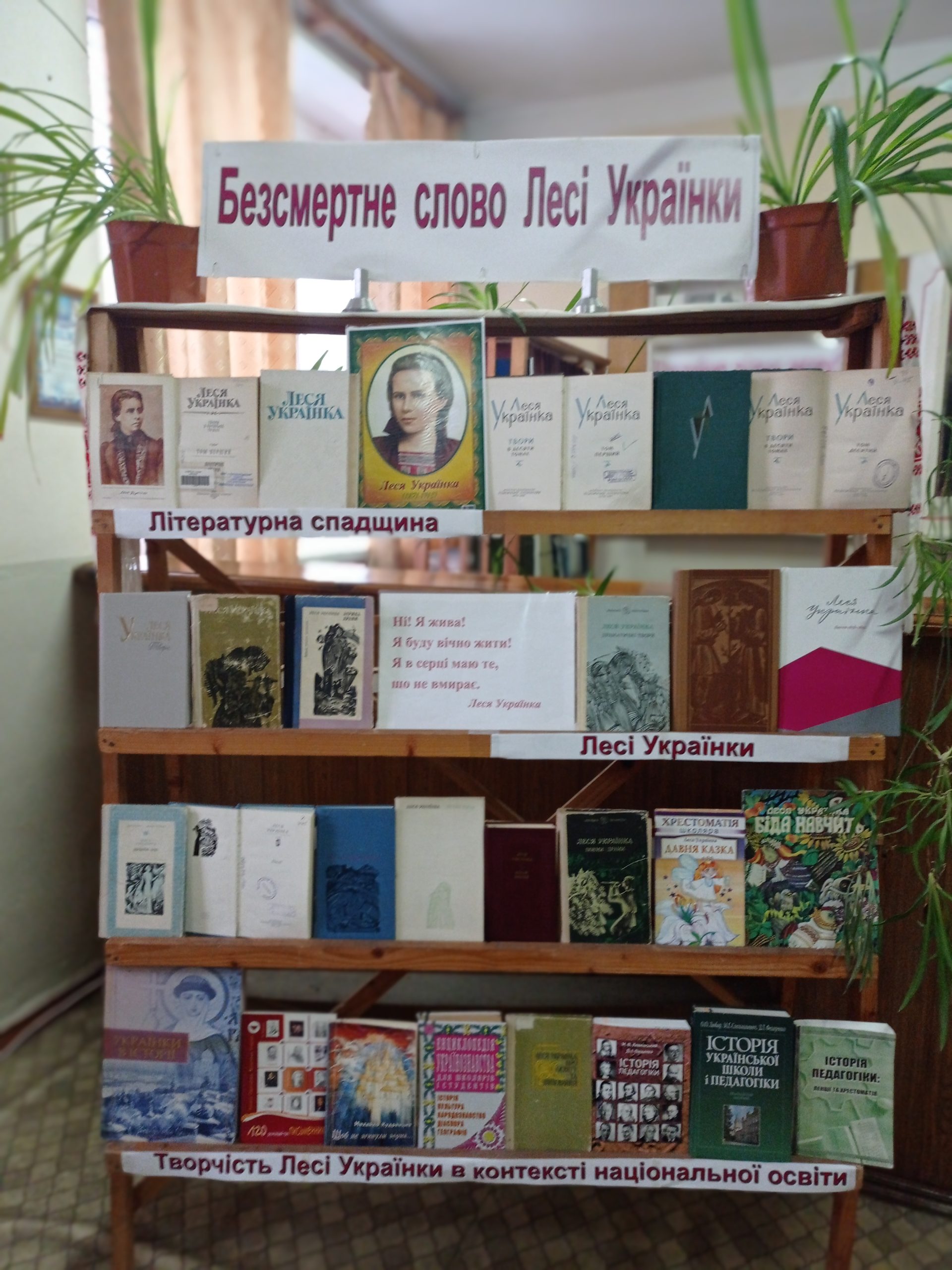 Другий розділ – «Творчість Лесі Українки в контексті національної освіти» презентовано літературою про видатну українську поетесу, які знаходяться у фонді бібліотеки.