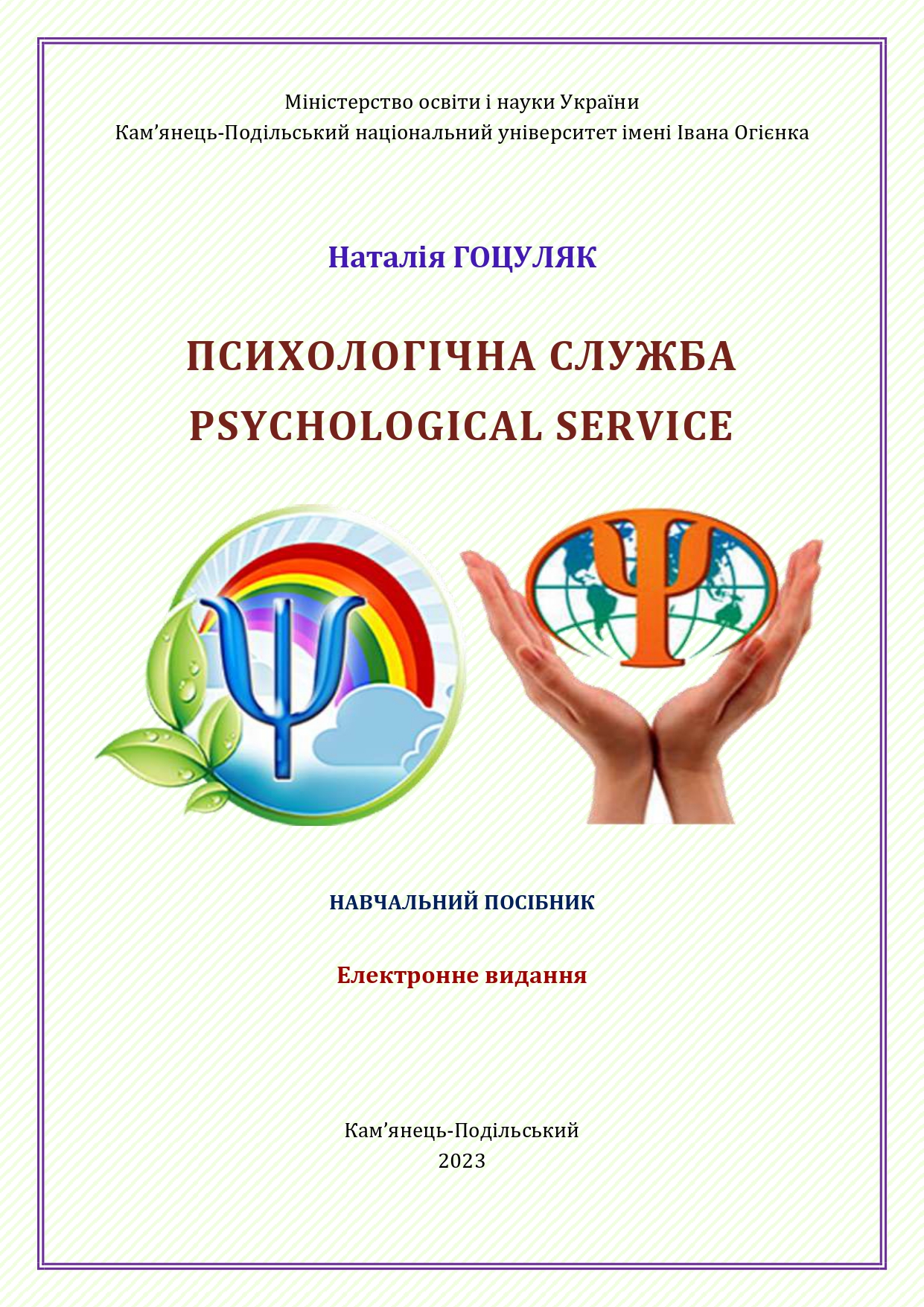 Гоцуляк Н.Є. Психологічна служба: навчальний посібник [Електронний ресурс]. Кам’янець-Подільський: Кам’янець-Подільський національний університет імені Івана Огієнка, 2023. – 138 с.